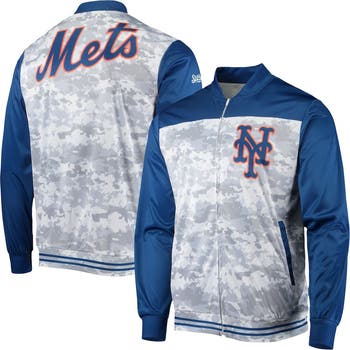 Layer up as you enjoy watching your favorites in this New York Mets full-zip by Stitches. This lightweight jacket features bold New York Mets graphics on top of a camo pattern for a dedicated fan getup. A stand-up collar supplies a bit of extra coverage in case of chilly weather, and side slip pockets tuck your small items away.