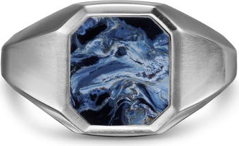 A beautifully veined pietersite inlay offers an arresting flash of color and pattern for this signet ring made of polished sterling silver.