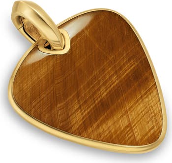 Clean lines and smooth surfaces, hallmarks of the Streamline collection distinguish this guitar-pick shaped amulet boasting a stone inlay and 18-karat gold frame.