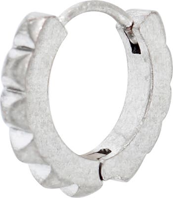 Pyramidal studs bring bold edge to ensembles paired with these rugged huggies handcrafted from antique-finish sterling silver.
