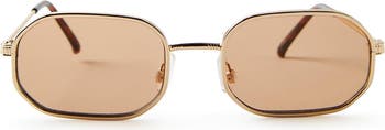 Take yourself back to the summer when it was all good, with the Daydreamer Sunglasses. These sunglasses have a rectangular lens shape with hexagonal sides. They have thin metal frames and arms, with tortoiseshell covered temple tips.