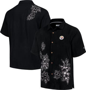 Men's Tommy Bahama Black Pittsburgh Steelers Hibiscus Camp Button-Up Shirt