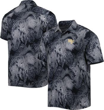 The Tommy Bahama Black Wake Forest Demon Deacons Coast Luminescent Frond IslandZone Button-Up Camp Shirt is the perfect way to show your support for the Wake Forest Demon Deacons. This stylish shirt features embroidered graphics of the Demon Deacons logo, a full-button front, and side splits at the hem. Made from recycled polyester and spandex, this shirt is both comfortable and durable, making it perfect for any occasion. Whether you're cheering on the Demon Deacons at the game or just showing your support around town, this shirt is sure to turn heads.