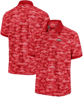 Enjoy classic comfort and Arkansas Razorbacks spirit with this Tommy Bahama Sport Bay View IslandZone Polo . This polo is crafted from recycled materials and features moisture-wicking technology, ensuring you stay cool and dry whether you're cheering from the stands or enjoying a sunny day out. The allover printed design adds a touch of sporty style, while the embroidered team logo on the left chest proudly showcases your Arkansas Razorbacks pride.