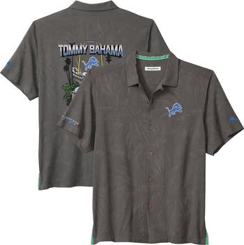 Men's Tommy Bahama Gray Detroit Lions Endzone Paradise COOLMAX Button-Up Shirt