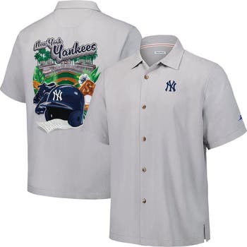 Men's Tommy Bahama Gray New York Yankees Hit and Run Silk Camp Button-Up Shirt