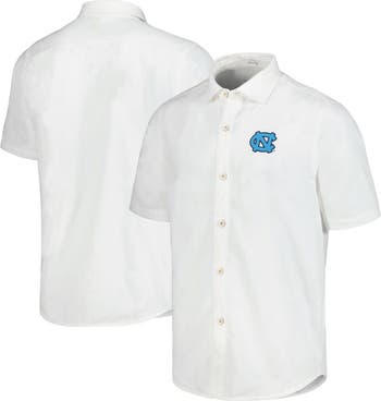 Men's Tommy Bahama White North Carolina Tar Heels Coconut Point Palm Vista IslandZone Camp Button-Up Shirt