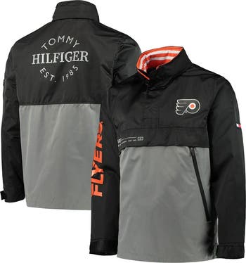 Men's Tommy Hilfiger Black/Gray Philadelphia Flyers Anorak Quarter-Zip Hoodie Jacket