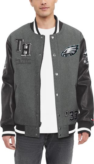 Men's Tommy Hilfiger Heather Gray/Black Philadelphia Eagles Gunner Full-Zip Varsity Jacket