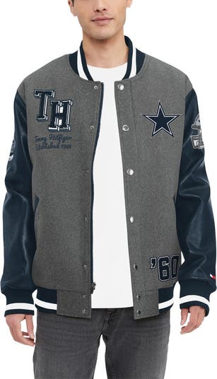 Men's Tommy Hilfiger Heather Gray/Navy Dallas Cowboys Gunner Full-Snap Varsity Jacket