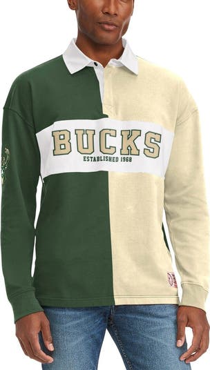 Men's Tommy Jeans Green/Cream Milwaukee Bucks Ronnie Rugby Long Sleeve T-Shirt