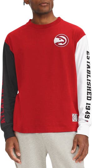 Men's Tommy Jeans Red Atlanta Hawks Richie Color Block Long Sleeve T-Shirt