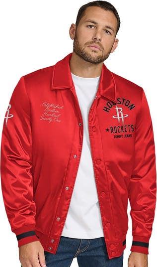 Men's Tommy Jeans Red Houston Rockets Jacob Chain Stitch Applique Full-Snap Varsity Jacket