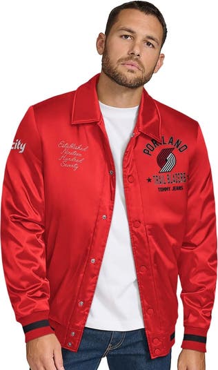 Men's Tommy Jeans Red Portland Trail Blazers Jacob Chain Stitch Applique Full-Snap Varsity Jacket