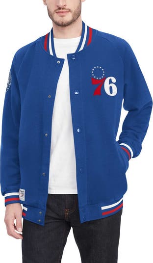 Men's Tommy Jeans Royal Philadelphia 76ers Dane Raglan Full-Snap Varsity Jacket