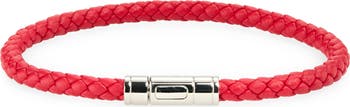 Tightly braided, vibrantly hued leather brings textural counterpoint to the polished metallic clasp of a bracelet that lets you go casual or elevated depending on your mood. Its slim profile makes it a great final accent to any going-out or staying-in look.