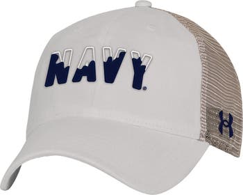 Top off any outfit with this Navy Midshipmen College Essentials Adjustable Trucker Hat from Under Armour.Featuring embroidered team graphics with raised details, this hat boldly displays your Navy Midshipmen pride. The mesh mid and rear panels enhance breathability, ensuring you stay cool and comfortable whether you're cheering from the stands or out and about.