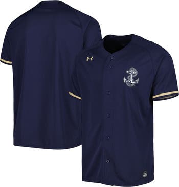 Get ready for every Navy Midshipmen home run, no-hitter and big play by picking up this Replica baseball jersey from Under Armour. It features a stitched applique of the team's unmistakable logo on the chest, leaving no doubt who your favorite squad is. The full-button front gives this jersey a classic look and feel that you'll desire for Navy Midshipmen game day.