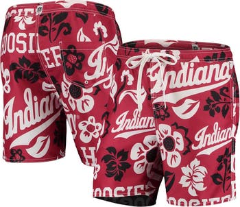 Men's Wes & Willy Crimson Indiana Hoosiers Floral Volley Logo Swim Trunks