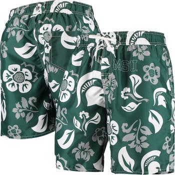 Men's Wes & Willy Green Michigan State Spartans Floral Volley Swim Trunks
