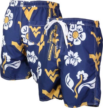 Men's Wes & Willy Navy West Virginia Mountaineers Floral Volley Logo Swim Trunks