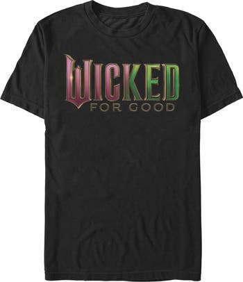 - Real style and friendship are truly unlimited with this new men's t-shirt that is perfect for whenever you're feeling a little defiant! Featuring the official logo for Wicked: For Good printed in pink and green across the front.
