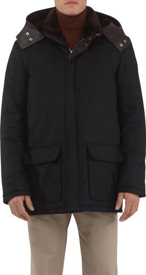 Stay warm and comfortable with the Men's Cashmere & Wool Parka, lined with Genuine Shearling for added softness and insulation.