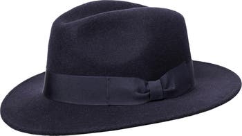 This formal fedora is perfect fit for special occasions. With a classic bowed hatband this hat is a timeless piece meant to be passed down. The interior contains a goat skin sweatband made to fit comfortably and securely on one's head. Made in Italy, this wool fedora is handcrafted to perfection. This item can only be shipped to a United States address.