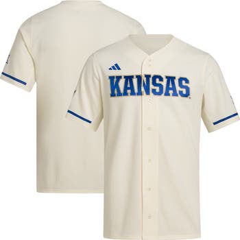 Rep your favorite team in style with this Kansas Jayhawks Replica Baseball Jersey from adidas. This replica jersey is built with lightweight, breathable fabric and features a classic full-button front, making it perfect for game day or any day you want to show your Kansas Jayhawks spirit. The sewn-on fabric applique team wordmark at the chest proudly displays your Kansas Jayhawks pride in contrasting colors.