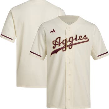 Rep your favorite team in style with this Texas A&M Aggies Replica Baseball Jersey from adidas. This replica jersey is built with lightweight, breathable fabric and features a classic full-button front, making it perfect for game day or any day you want to show your Texas A&M Aggies spirit. The sewn-on fabric applique team wordmark at the chest proudly displays your Texas A&M Aggies pride in contrasting colors.