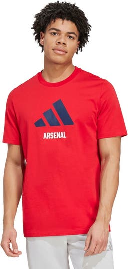 Complete your Arsenal match-day look with this Three-Stripe Wordmark T-Shirt from adidas. Made from breathable 100% cotton, this shirt provides lasting comfort for all-day wear. The screen print graphics boldly display the Arsenal wordmark, making it clear which team you support.