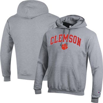 Men's Champion Heather Gray Clemson Tigers Arched Logo Fleece Pullover Hoodie