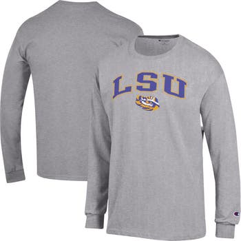 Men's Champion Heather Gray LSU Tigers Arch Over Logo Long Sleeve T-Shirt