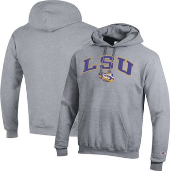 Cozy up and cheer on the LSU Tigers with this Champion Arch Over Logo Pullover Hoodie. This midweight LSU Tigers hoodie features a fleece lining for added warmth and comfort, making it ideal for moderate temperatures. An adjustable drawstring hood helps block out the elements, while a front pouch pocket provides convenient storage.