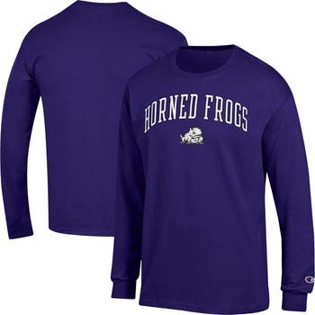 Show off your TCU Horned Frogs pride with this stylish and comfortable Champion Arch Over Logo Long Sleeve T-Shirt. Made from breathable 100% cotton, this tee keeps you comfortable whether you're cheering from the stands or relaxing at home. The screen print arched wordmark over the team logo at the chest showcases your TCU Horned Frogs spirit.