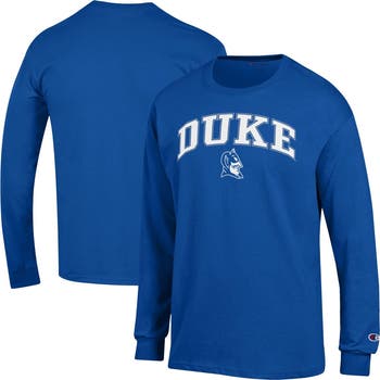 Show off your Duke Blue Devils pride with this stylish and comfortable Champion Arch Over Logo Long Sleeve T-Shirt. Made from breathable 100% cotton, this tee keeps you comfortable whether you're cheering from the stands or relaxing at home. The screen print arched wordmark over the team logo at the chest showcases your Duke Blue Devils spirit.