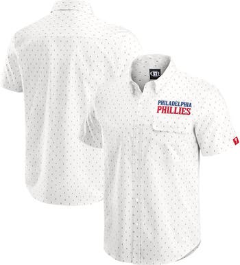 Channel your love for the Philadelphia Phillies with this stylish Printed Button-Down Shirt from the Darius Rucker Collection by Fanatics. This breezy 100% cotton button-down top features an eye-catching all-over sublimated dot design that's sure to turn heads. The embroidered team wordmark at the left chest provides a subtle yet stylish touch, making it clear which team you're rooting for.