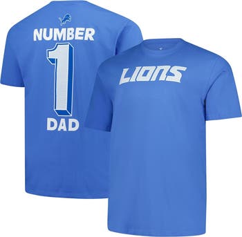 Celebrate Father's Day and your Detroit Lions pride with this Big & Tall Number One Dad T-Shirt from Fanatics. This tee features a classic crew neck and soft, breathable cotton fabric, making it an easy choice for all-day comfort. The screen-printed team wordmark across the front and the team logo with "Number 1 Dad" on the back make it clear you're the ultimate Detroit Lions fan.