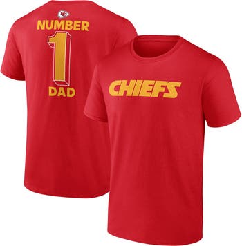 Celebrate your Kansas City Chiefs pride with this Number One Dad T-Shirt from Fanatics. This tee features a classic crew neck and soft, breathable cotton fabric, making it an easy choice for all-day comfort. The screen-printed team wordmark across the front and the team logo with "Number 1 Dad" on the back make it clear you're the ultimate Kansas City Chiefs fan.