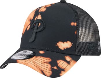 Men's New Era Black Philadelphia Phillies Bleached A-Frame 9FORTY Adjustable Hat