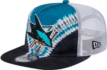 Men's New Era Black/Teal San Jose Sharks Throwback V-Dye Adjustable Golfer Hat