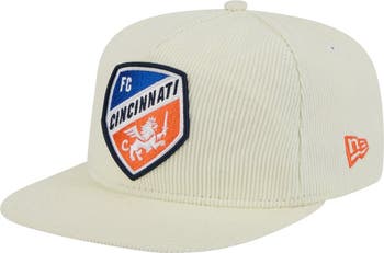 Hit the links in style with this FC Cincinnati 2025 Kickoff Snapback Golfer Hat from New Era. This FC Cincinnati hat features a unique five-panel construction with a pinched A-frame design on the front for a modern take on a classic look. The corduroy fabric adds a vintage feel, while the embroidered FC Cincinnati logo on the front and MLS shield on the back proudly display your team pride.