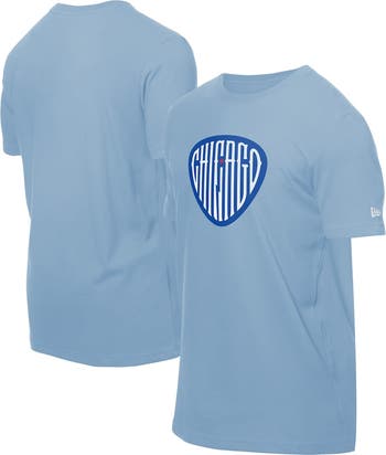 Men's New Era Light Blue Chicago Cubs Guitar Pick T-Shirt