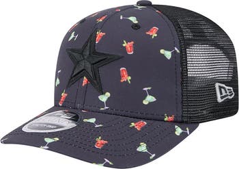 Support your Dallas Cowboys with this New Era Adventure Drinks Pattern 9SEVENTY Stretch-Snap Hat. This Dallas Cowboys hat features a structured fit with a mid crown and slightly curved bill for a classic look and comfortable feel. The unique drink pattern on the solid front panels adds a touch of personality, making it a standout piece for any Dallas Cowboys fan.