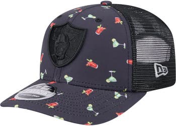 Support your Las Vegas Raiders with this New Era Adventure Drinks Pattern 9SEVENTY Stretch-Snap Hat. This Las Vegas Raiders hat features a structured fit with a mid crown and slightly curved bill for a classic look and comfortable feel. The unique drink pattern on the solid front panels adds a touch of personality, making it a standout piece for any Las Vegas Raiders fan.