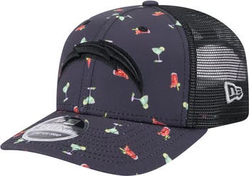 Men's New Era Navy/Black Los Angeles Chargers Adventure Drinks Pattern 9SEVENTY Stretch-Snap Hat