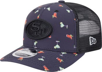 Men's New Era Navy/Black San Francisco 49ers Adventure Drinks Pattern 9SEVENTY Stretch-Snap Hat