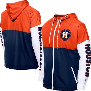 Gear up for your next trip with this Houston Astros Color Block Full-Zip Hoodie Windbreaker from New Era. This stylish windbreaker features a bold color block design in team colors complete with screen-printed graphics. With dropped shoulders for a relaxed fit, an adjustable drawstring hood and a drawcord hem, this Houston Astros windbreaker offers both comfort and customizable style.