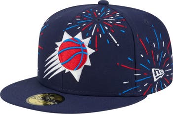 Celebrate your Phoenix Suns fandom with this Americana Fireworks 59FIFTY Fitted Hat from New Era. This cap proudly boasts a vibrant, all-over embroidered firework design that's sure to turn heads. As New Era's true fitted cap, the 59FIFTY design ensures a comfortable fit, making it the perfect way to show your Phoenix Suns pride.