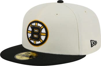 Support your Boston Bruins with this New Era Chrome Two-Toned 59FIFTY Fitted Hat. This Boston Bruins hat features a high crown and structured fit for a classic look. The embroidered logo at the front panels pops with raised details, while the contrast-color bill and embroidered NHL Shield at the back bottom elevate the design.